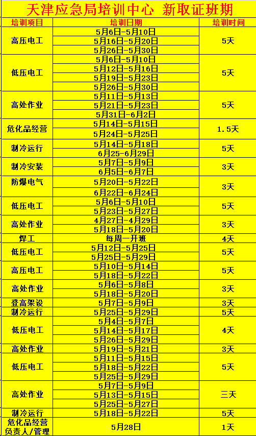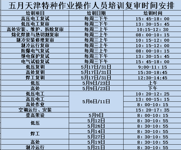 2026年5月天津特种作业操作人员培训时间安排!